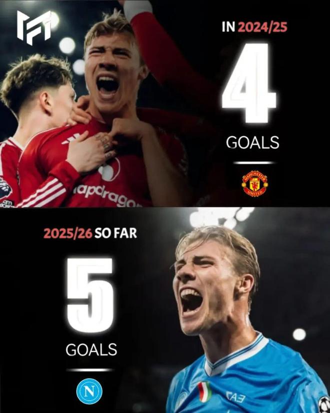 上赛季,霍伊伦在曼联陷入职业生涯低谷,32场英超比赛仅打入4粒进球。今年夏天,曼联签下了谢什科,霍伊伦遭到了阿莫林的彻底弃用,最终被租借至那不勒斯。霍伊伦初到意大利时表现出色,首秀便破门;但随后整个秋季陷入进球荒。